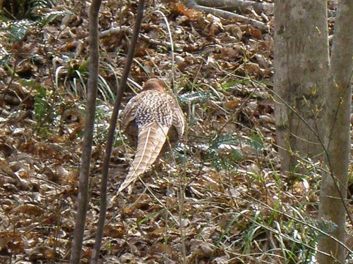 奥を向いていて手前が尾羽だ 山に逃げ込む途中で写した