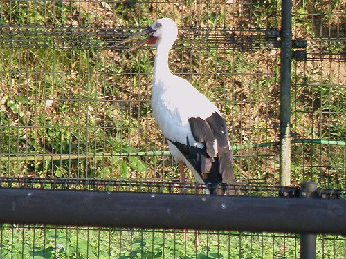 ゲージ内で飼われていた 足が赤く羽根の黒と白の色が美しい