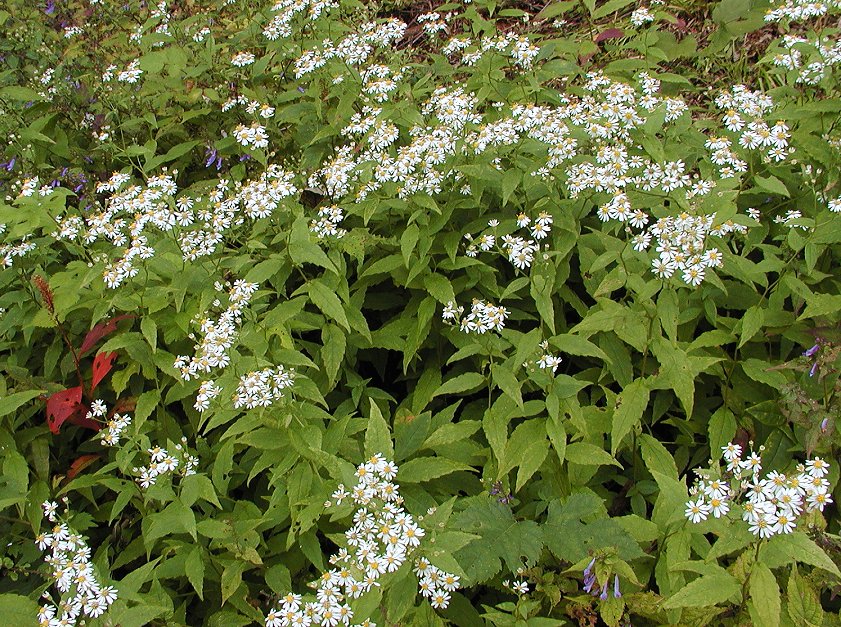 強健で群生する 青い秋丁子や紅葉した草紫陽花もある 2009.9