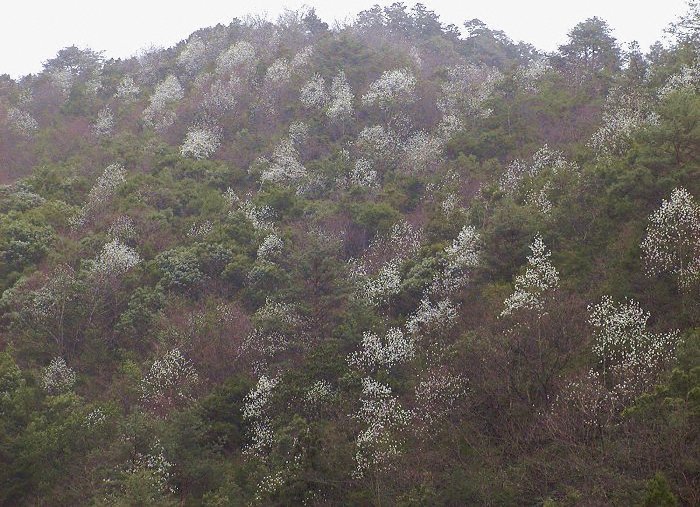 夕方、白く浮き上がるタムシバの樹林 2007.4