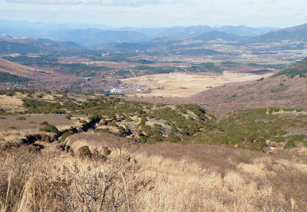 128E.九州の大分県 初冬の久住山山系の硫黄山登山道から見た長者原