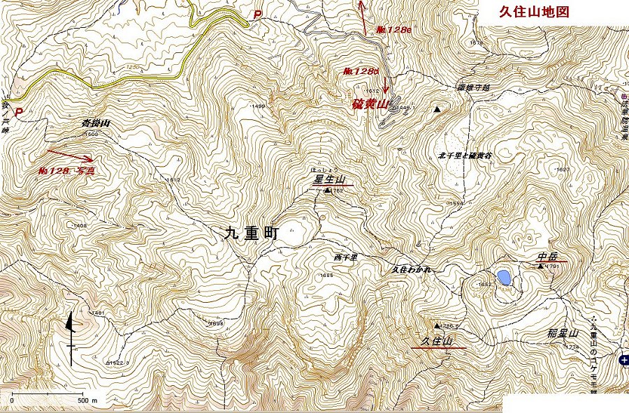 久住山に登る牧ノ戸峠は左端 写真方向の赤い矢印をクリックすると画像が変わります