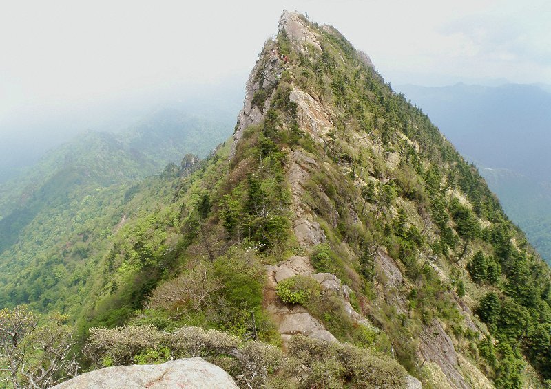頂上の弥山から見た東にある天狗岳 急だが迂回路があり登れる