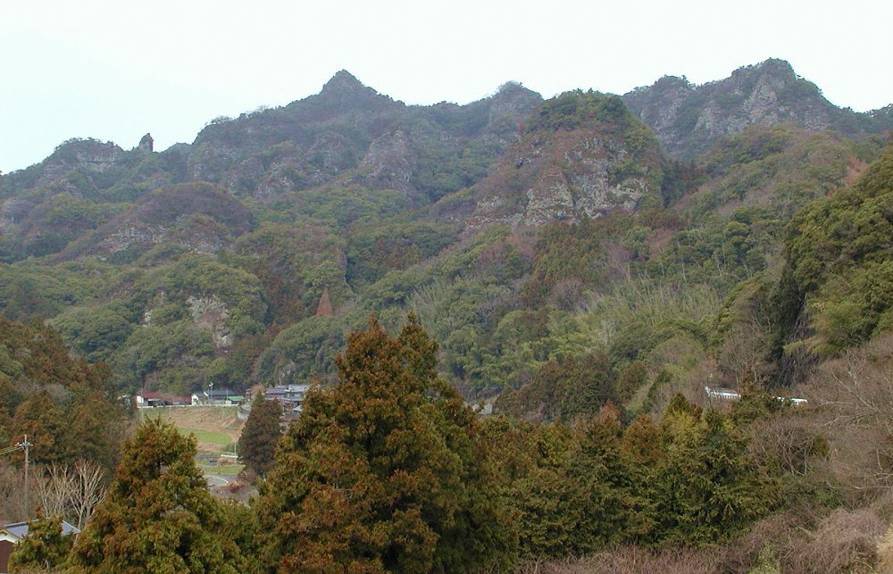 国東半島の岩山 平らな部分には民家があり穏やかな生活がある
