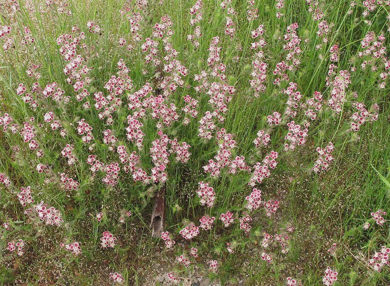 221.マンテマ 5月の末、海岸近くの道路脇に咲いていた 花は丸い小さな点に見える