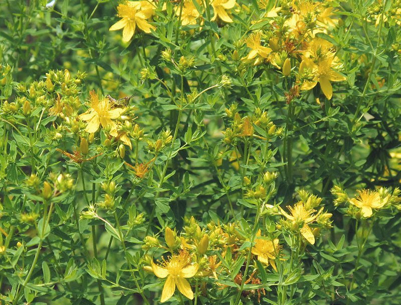 花の上にバッタが止まっている 花は鮮明な黄色 2014.6