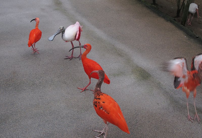 この赤いトキも手に乗ってエサを食べる。種類が豊富でまるで熱帯に行った気分になる。