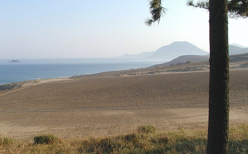 日が沈む頃には砂丘は赤色を帯びる 西から写していて対面している東側に施設が集中している