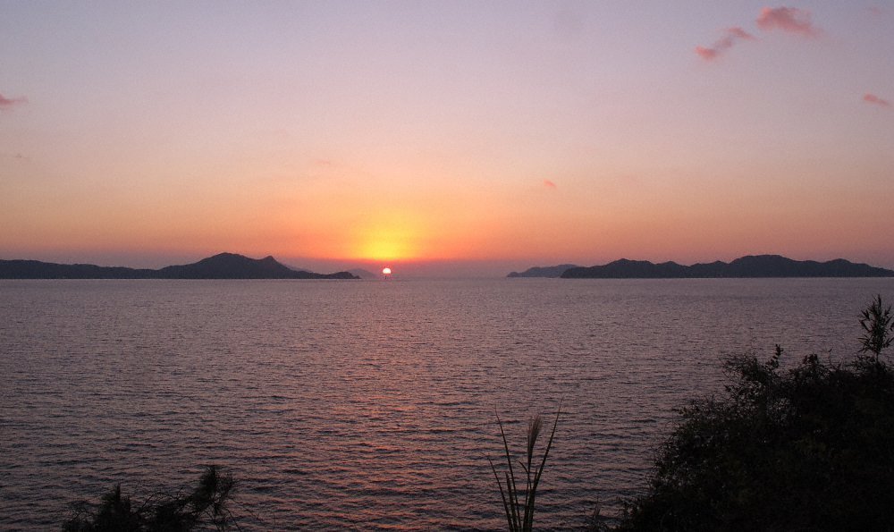 山口県東南部の瀬戸内海に突き出た室津半島から見た周防灘の入日