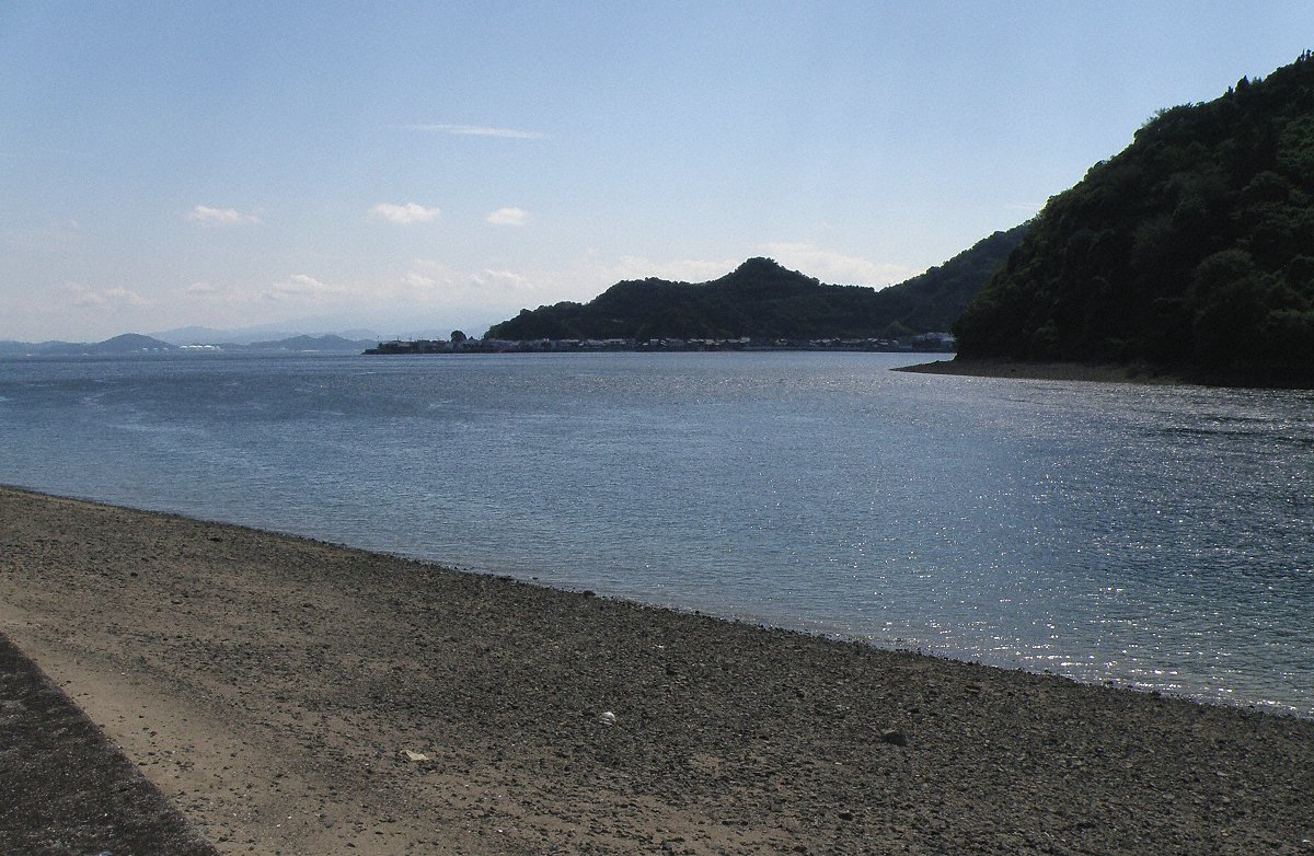 愛媛県今治市の関前岡村島より人待瀬戸の南西を写す ここは安芸灘大橋の一番奥の島