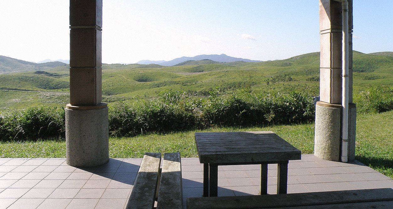 横断道路があり先に秋吉台が広がる 中には小さな森も数か所ある 石灰石があちこち露出している