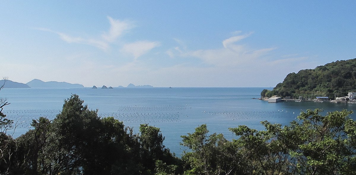 遠く豊後水道を見る 対岸の大分県豊後地方ははるか遠いのか、まるで見えない