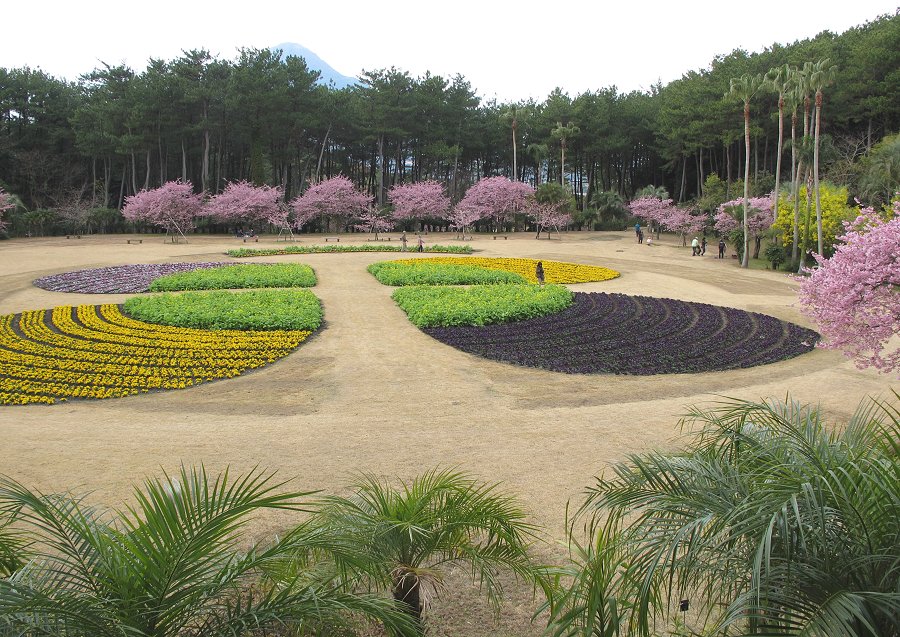 2015.2 椰子の木や早咲きの桜、黄色のアカシカやパンジー、菜の花で春一杯