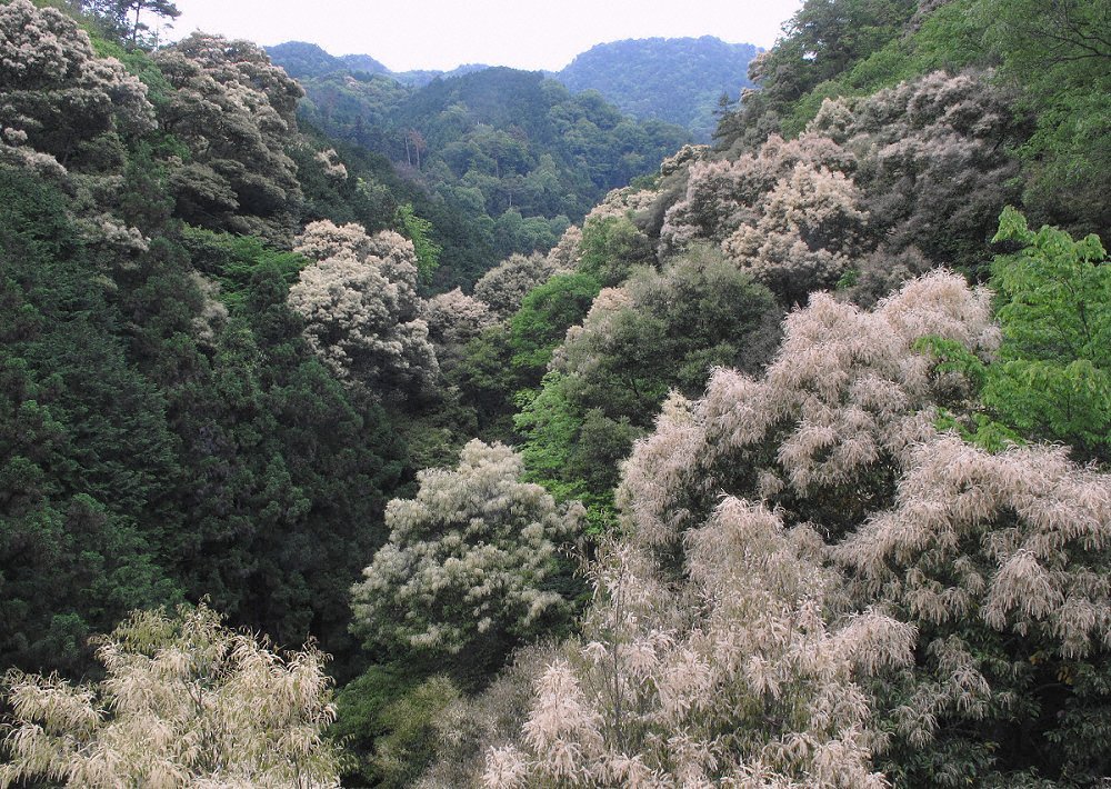 海近くの割に暖かい山に生える常緑樹 今年は見事に咲き山が薄黄白色に見えた (生まれて初めて)