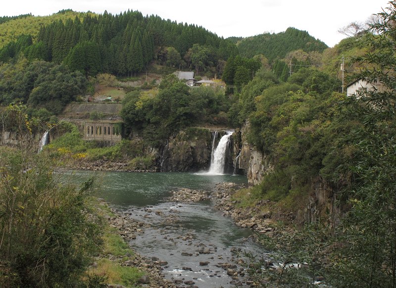 その左が発電に使われた水の滝 見えない左の川上に雄滝がありまるでダム見たいで一時加工された