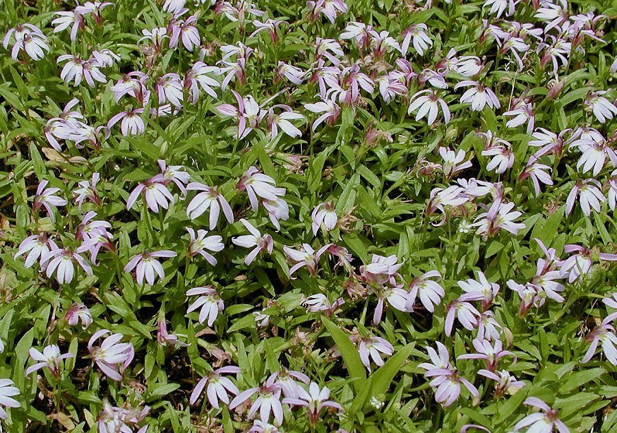 7〜8月に田の畔や溝に咲く小さな薄ピンクの花 溝が花で一杯になる