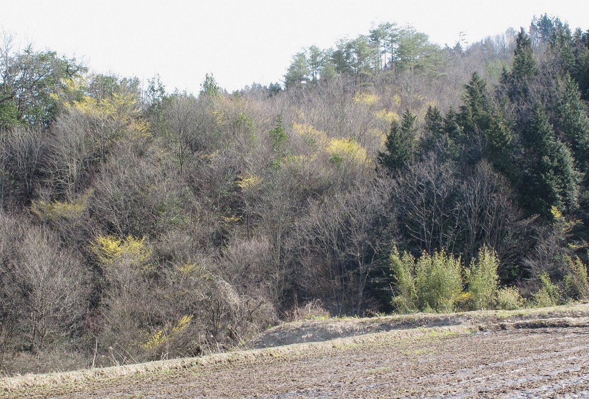 2016.3 中国山地もようやく雪が融けて早春模様 まず満作の黄色の花が咲き始めた 早春に咲く木の花は黄色が多い