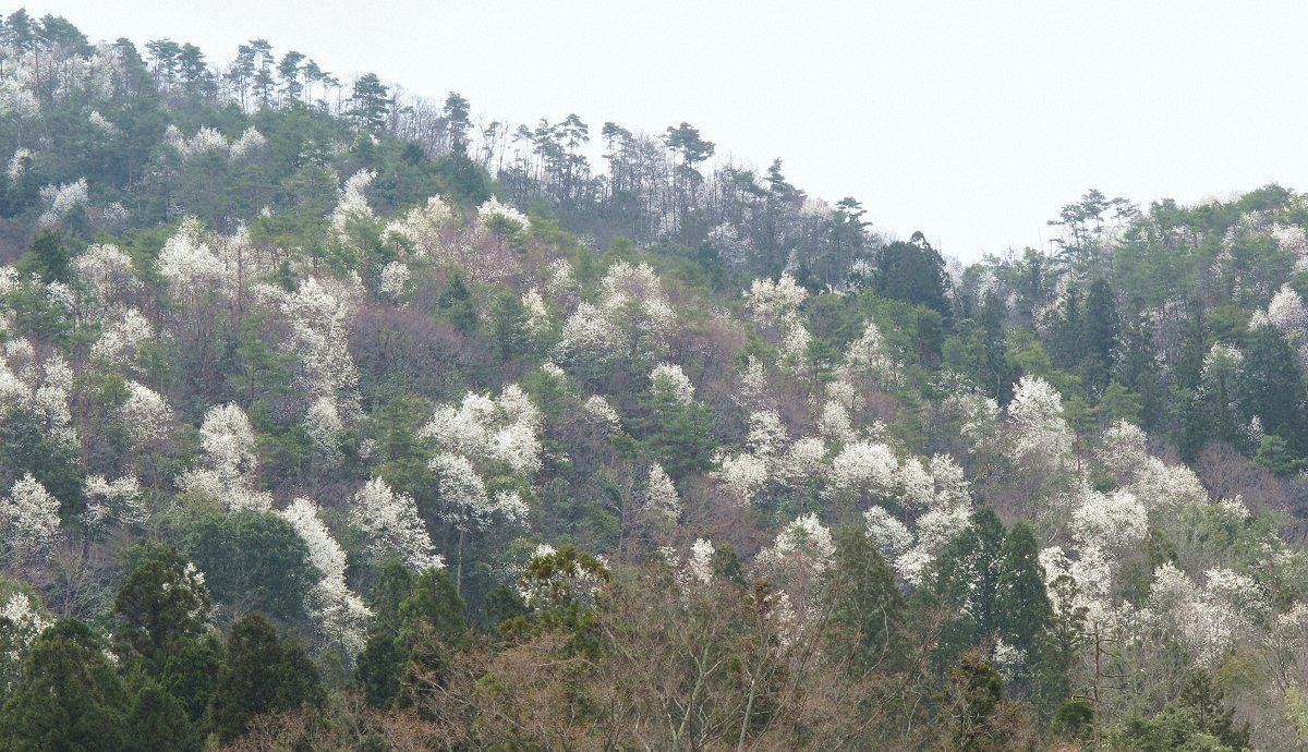 2016.4 真白なタムシバの花が今年は盛大に山桜や染井吉野、雪柳、山吹、ミツマタ、レンギョウ等と一緒に咲いた