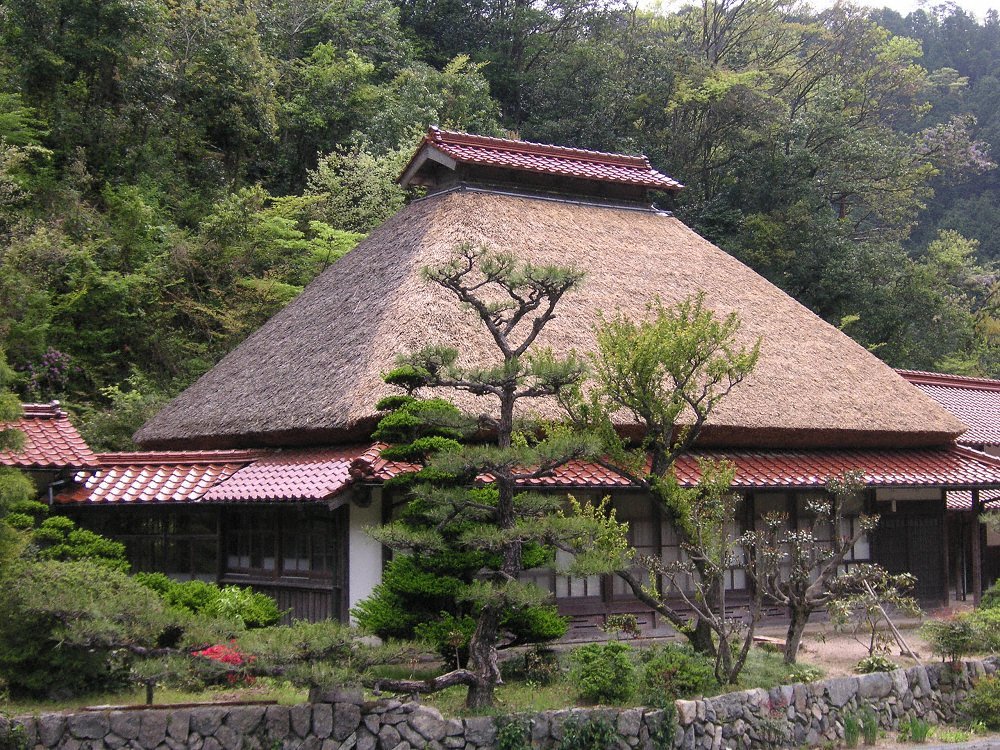 土とわらと木と瓦で作られている家 周りの自然と調和して違和感が無い