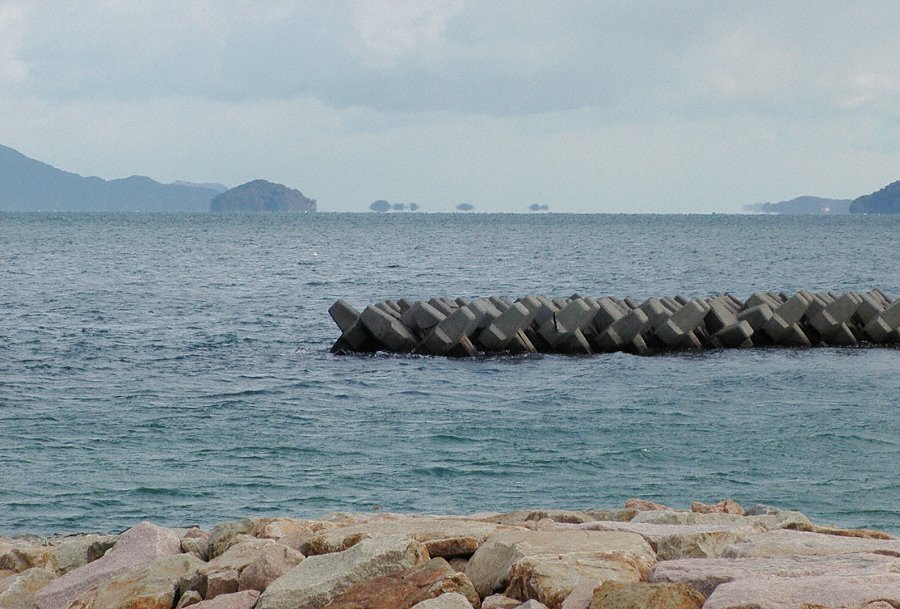 山口県周防大島の海で 寒い冬の日の朝遅くで水温は高いのであろう