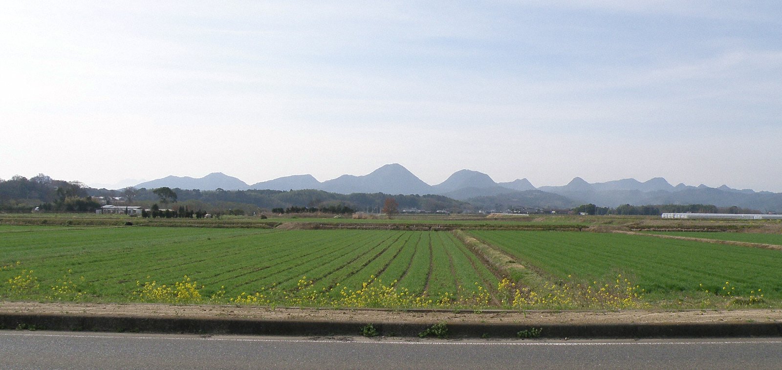 広々とした緑の農地とゆったりした山々 走っていても気分が落ち着く 道沿いに菜の花も咲いて春らしい これが日本の良さだろう