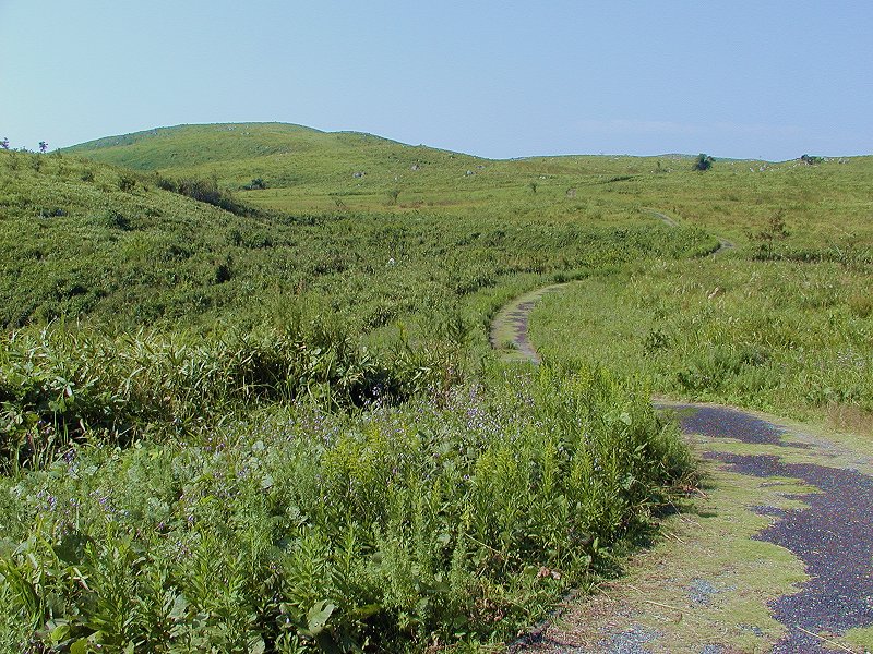 遊歩道は緩やかで歩きやすい・・・・のんびり散歩を楽しもう 手前の薄青色の花は