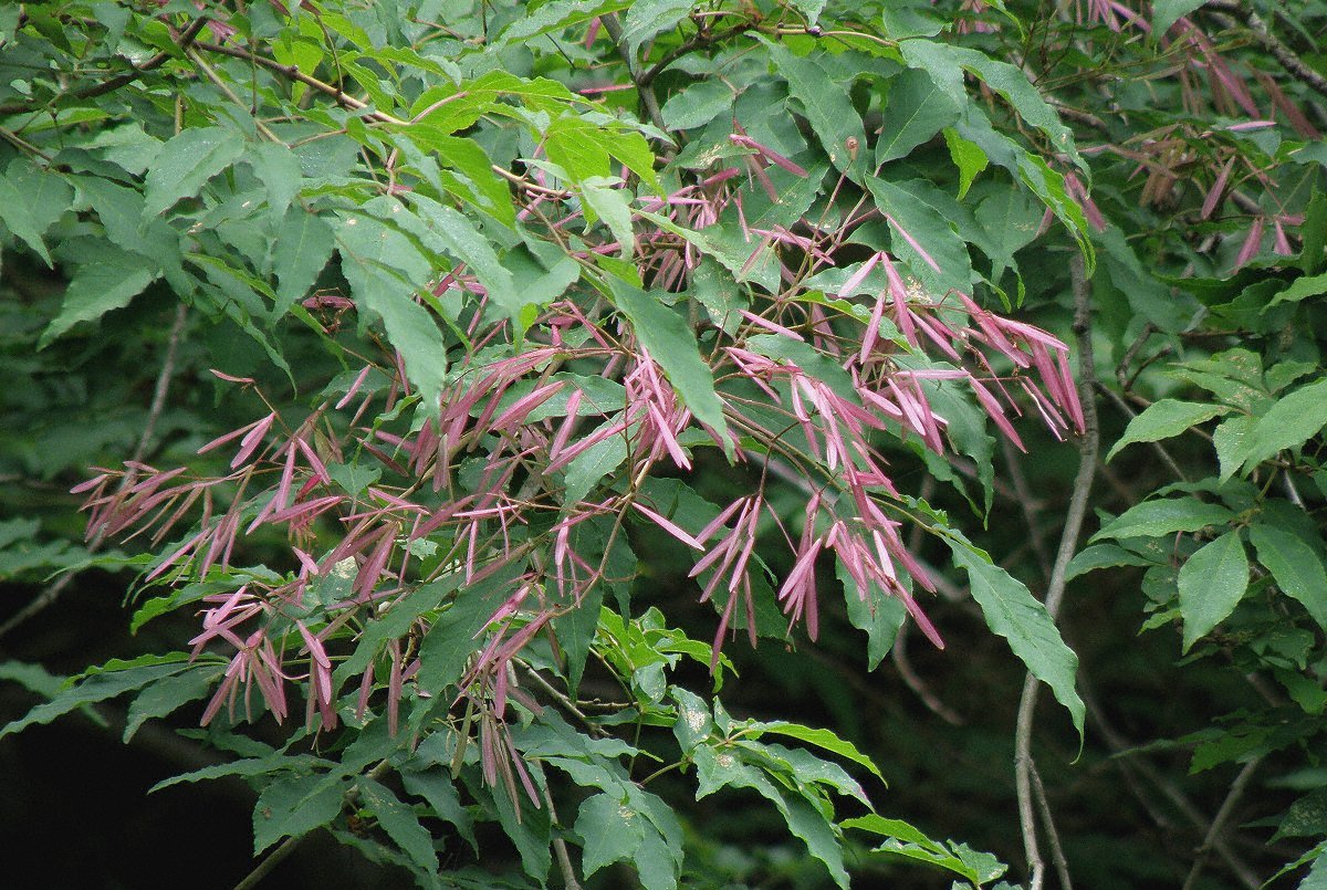 2019.6 ピンク色の珍しい花が咲いていると思い調べると丸葉青ダモの実だった