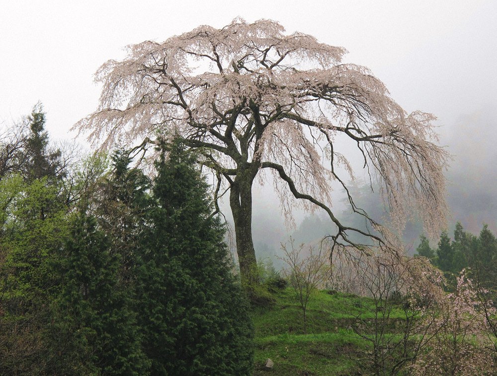 2015.4 与一野の丘にある巨木 春の霧の中で元気に咲いていた