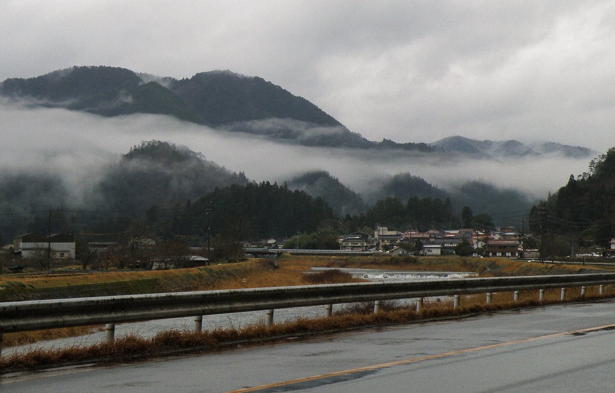 2021.1.23 太田川の上流の里山風景。 手前の道路は国道。