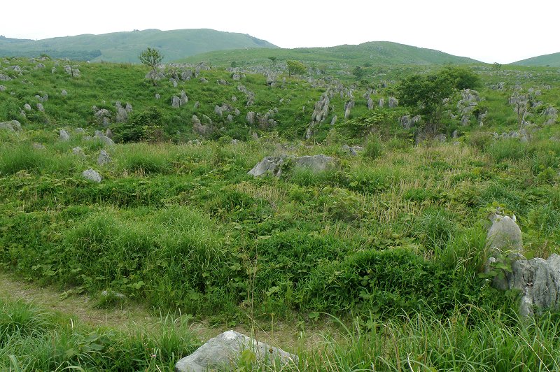 広大な草原と山。野草も歩道沿いに多い。山焼き直後には服に黒い煤がつくので注意!