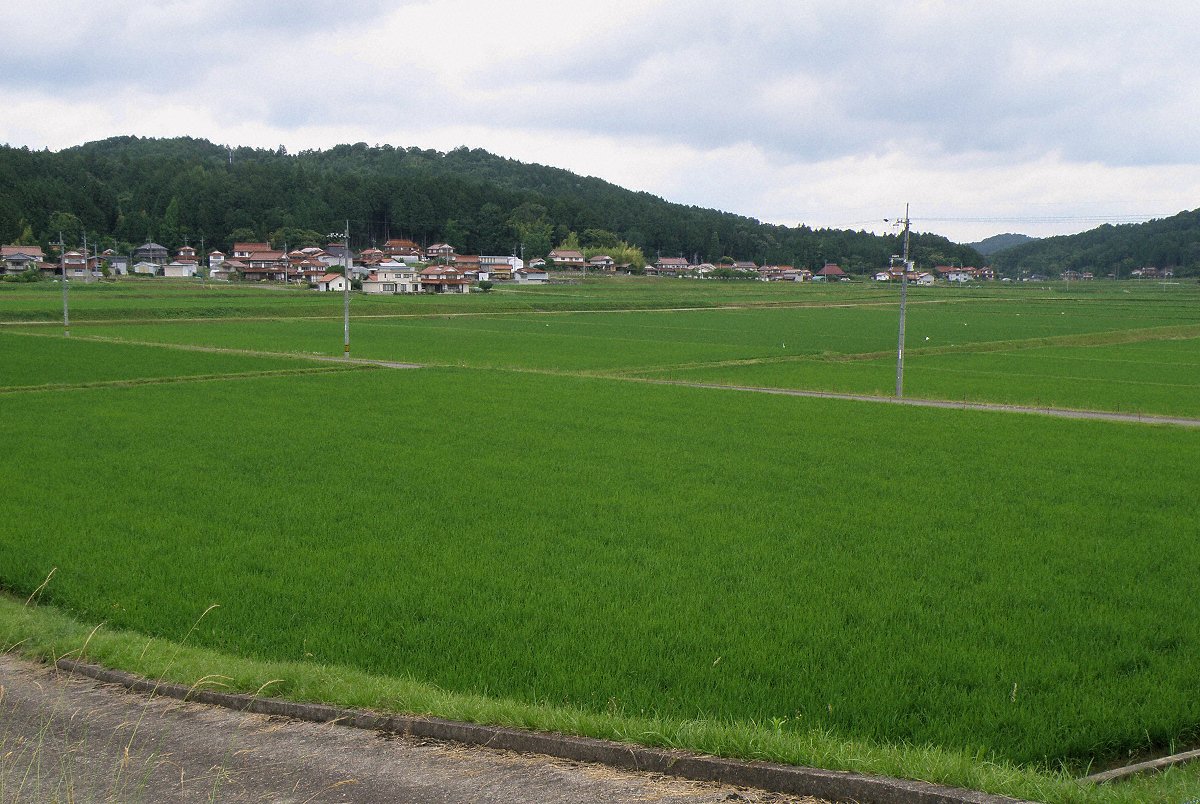 空はやはり梅雨の盛期を思わせる感じであった そして稲田のグリーンが美しい 民家も落ち着いた感じである