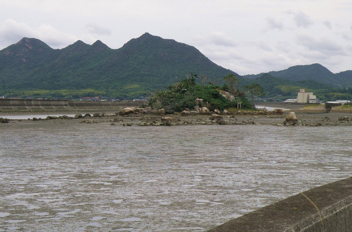 2024.6 写したのは潮が引いた時で島にはシラサギが目立つ ここはバックの山が目立って綺麗だ