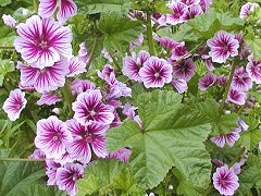 秋蒔、株分け 花径2.5cm 6〜9月咲き 草丈1.2mまで 土質は選ばない 葉巻蛾に注意母種はマロウで近くに植えると交雑 する 利用方法:花壇用、花をサラダ、 ハーブティーに、若葉をゆでて料理 に、鎮静作用あり 花言葉:甘美な、親切な気質