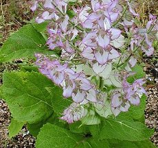 5〜7月に咲く 花は薄青紫やピンク色 ピンク色の大きな苞葉がある 春蒔きして2年目の初夏に花が咲く 他のサルビアに比べて葉が大きい 栽培地は日当たり地で 有機質の多い肥えた土地に植える 水はけを良くする 草丈1mまで 耐寒性あり 全草から香油が取れ薬用にもする 利用方法:香油用、薬用、花壇用