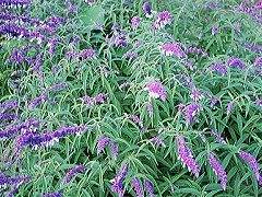 みともり 私の花図鑑 メキシカンセージ (アメジストセージ)戻る 多年草【しそ科サルビア属】 原産地 メキシコ 春先さし芽でふやす 10〜11月に咲く 冬は寒さより保護する 草丈1.5mまで 利用方法:花壇、切り花用、 ドライフラワーに
