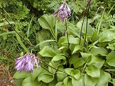 7〜8月咲 日当たりの良い高山に生える 花は他のギボウシに比べて紫色が 濃く美しい 花の長さ40mm程度 草丈50cm以下