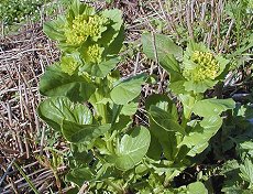 4〜9月咲き 高山の渓流そばに生える 黄色い十字花 葉は丸みを帯びる 元部の葉は茎を抱く 草丈50cm以内 ヨーロッパから帰化している ふゆがらしを見る