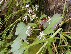 7〜10月咲き 高山の湿気のある岩地に生える 花径は1cm程度 葉は浅く5裂し荒い鋸歯がある 草丈は花茎を入れず15cm以下