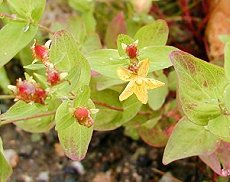 7〜8月咲き 黄色の花で径は2cm程度 実が赤く熟す 葉には赤い点が散在する 径は8mm大 草丈は20cm以下 北海道には同種のハイオトギリが ある 西洋弟切草(ヒペリカム)を見る 高嶺弟切を見る