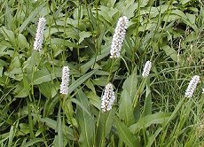 7〜9月咲き 美しい群落を作ることが多い 高原の日当たりの良い草地から湿 地に生える 花色はアイボリー(象牙色)少し ピンクがさす 花はブラシ状 草丈80cmまで