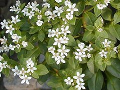 5〜6月咲 浜から磯の岩地へ生 える 白い五弁の花は1cm くらいで小さいが、 たくさん咲く 草丈40cmまで 葉は光沢があり厚い 花をつけた形を仏具 の払子・・・ほっす ・・・(禅宗の導師 が手に持つ仏具で元 は虫やチリを払う道 具)にみたてた