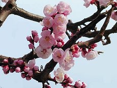 3〜4月に2cm大のピンクの花が咲き 美しい 枝にまとまって咲く つぼみは濃いピンク 長野県の更埴市の杏畠は有名 耐寒性が強い果樹 開花は染井吉野より1週間早い 実は黄色で香高いが生食より加工 用にされる 善光寺 鐘のうなりや 花一里 芭蕉 用途:干し果、ジャム他