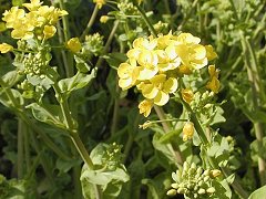 開花は2〜5月 田園に春を告げる野菜の花 花弁が4枚なので十字花 菜種から植物油を取る重要作物 草丈80cmまで 畑より河原に逃げ出して野生化し 春の河川を彩る 用途:花や葉を煮物や漬物に、種 は菜種油に利用 花言葉:快活さ