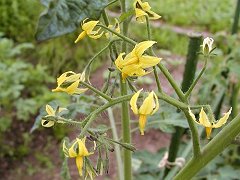 6〜8月に開花 花弁は5枚 黄色の花 充分暖かくなって植える 有機質の肥料を充分与える つい脇芽を伸ばしてしまい笠状に なり茎と葉ばかりになる 脇芽はかぎ、主枝を伸ばして結実 をはかる 暑い夏に弱いので敷き藁を充分入 れてやる 支柱をしっかり立てないと横にな り実の熟れ方が悪くなる 用途:実を生食、ジュースや煮込 み料理に