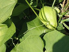 4月に温床で蒔く 夏遅くに薄黄白色の小さな花を咲 かせる 緑の充実した果実を収穫する 種は大型で一つ 実は酢もみ、漬物、煮物にする 実は熟れると緑白色になる 広い場所に植える 霜が降りると枯れる 全草を家畜の餌にする 根も食べられるようだ 名前は鹿児島から栽培が始まった 為 熱帯系なのでそうかなと思う