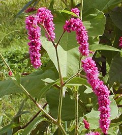春蒔き 育苗して定植 8〜10月咲き 濃いピンクで夏の花の少ない時期に 咲く 野生するほど丈夫 花はひも状で垂れ下がる 長さ10cm位 草丈が2mまでで、よく育つので倒伏 注意 花壇の後部に植える 日当たりの良い所で栽培 (日陰不可) 地植えが良い 利用方法:花壇に利用
