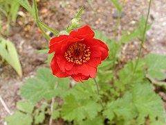 6〜7月に咲く 花は日本の大根草の黄色とは違い赤色 葉型が大根に似ている 花径4cm大 春に植付けと種まきをする 西日のあたる場所を避ける 乾燥を嫌う 耐寒性は強い 夏の高温多湿に弱い 草丈30cmまで 山野草的だ ゲウムと呼ばれる 利用方法:花壇、鉢植え用 花言葉: