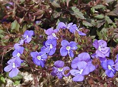 5〜8月に咲く 青色で花は4裂する オシベやメシベが長い 花径12mm大 草丈25cm以下 耐寒性が強い 葉が菊の葉に似る 変種のみやまくわがた 利用方法:鉢植、花壇用 花言葉: