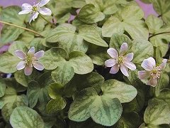 3〜4月開花 花色は白、赤紫、ピンクと多色あり 花径は30mm程度 葉は3つに割れて縁はまるい 同属のみすみそうは縁が尖る 用土に腐葉分を充分混ぜる 排水の良い半日陰で栽培する 寒さには強いが暑さを嫌う 名前は葉の形から 自生は山地に生える 草丈15cm以下 春は充分陽にあて、夏は半日陰で 栽培 利用方法:鉢植えや花壇用 花言葉