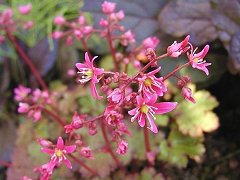 8〜10月に咲く 花色は濃ピンク 野生種は渓流沿いの湿気が多い岩に生 えている(白い花) 半日陰で腐葉土に植え水を充分与える 事 耐寒性あり 葉も赤く、また形がユキノシタの葉に 似ている 草丈10cmまで(花を除く) 利用方法:鉢植えや花壇用 花言葉: